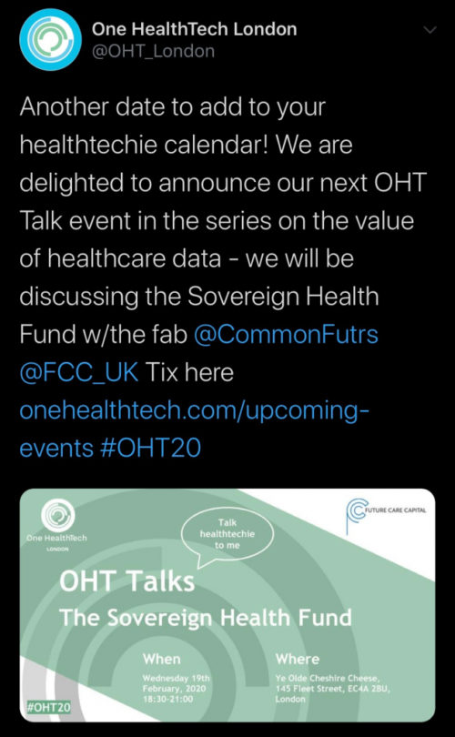The day culminated in our contributing a few words to BBC Radio 4’s Analysis programme alongside Sir John Bell, Matthew Gould (NHSX), Reema Patel (Ada Lovelace Institute) and others – which, truth be told, was my first outing on radio and rather daunting to hear (as I’m quite sure could be discerned from the distinct wobble in my voice) – but Dave Edmonds expertly explored how our data could underpin the development of Artificial Intelligence to benefit patients and the NHS in the years to come. In particular, it was great to finally have an opportunity to open up the idea of a Sovereign Health Fund for discussion with a wider audience – more of which will happen if you’re lucky enough to bagsy one of the remaining tickets to the OneHealthTech London event at which I’ll be speaking later this month.